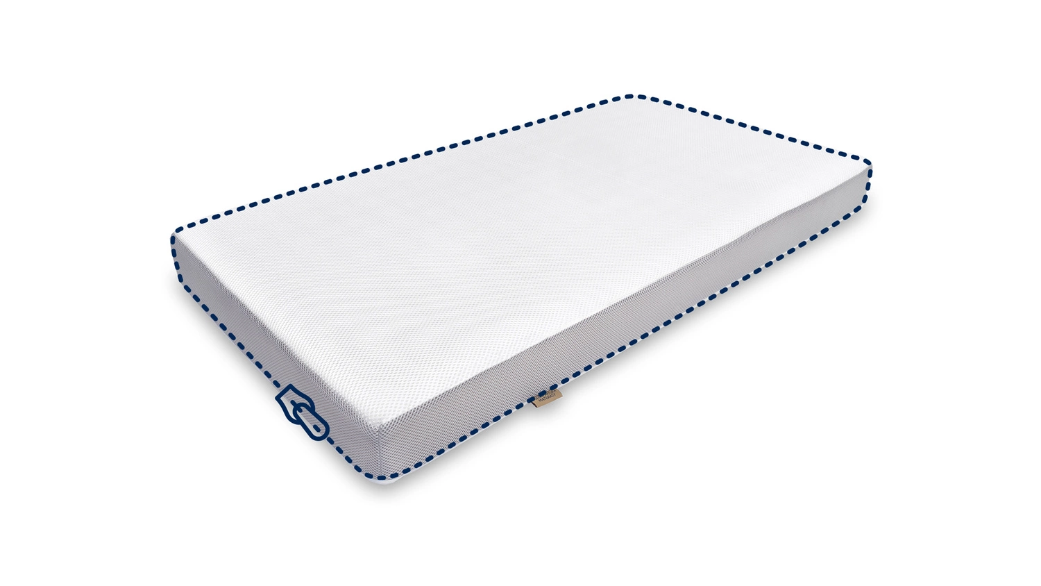 W pokrowcu zastosowaliśmy dystansową siatkę 3D o grubości aż 8 mm i gramaturze 600 g/m2. Taka konstrukcja wytrzyma rosnącą wagę dziecka. Spłaszczanie się jej pod coraz większym naciskiem będzie znacznie wolniejsze.