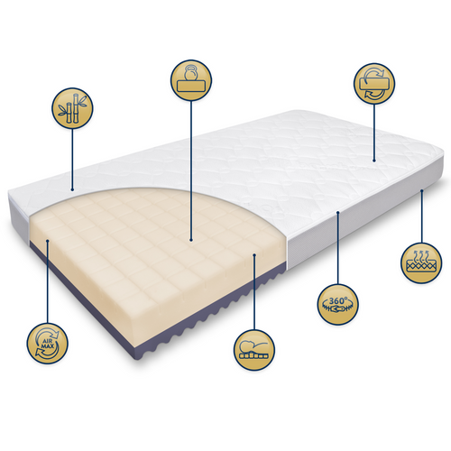 Dzięki tej konstrukcji materac zachowuje idealny balans między stabilnością a komfortem, wspierając prawidłowe ułożenie kręgosłupa w każdej fazie snu.