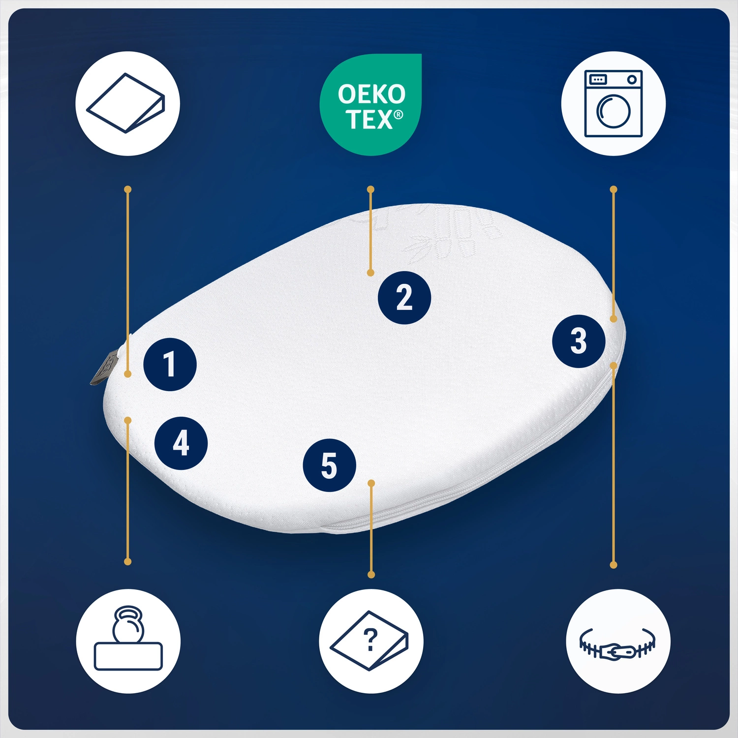 1. Pianka T25 – solidna w codziennym użyciu Materiał o dobrej trwałości i sprężystości, idealny do regularnego użytkowania, zapewnia stabilne podparcie. 2. Możliwość prania pokrowca Możliwość wielokrotnego prania w temperaturze do 40°C – pomaga utrzymać higienę i świeżość produktu na co dzień. 3. Funkcja klinowa Do ograniczania ryzyka zachłyśnięcia przy ulewaniu lub refluksie. Do ułatwiania oddychania podczas kataru i infekcji dróg oddechowych – poprzez uniesienie górnej części ciała.