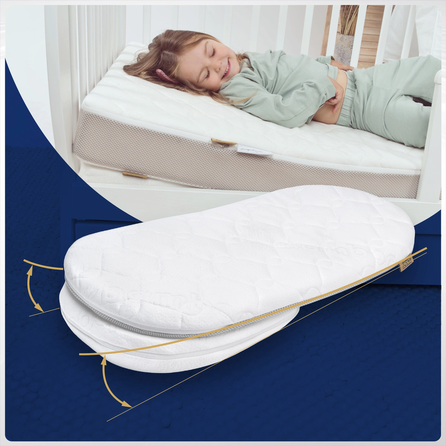✔️ Klin unosi górną część ciała dziecka o kilka centymetrów, tworząc optymalny kąt nachylenia materaca.