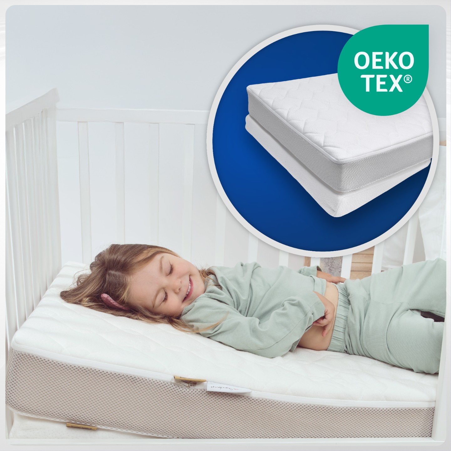 ✔️ Klin unosi górną część ciała dziecka o kilka centymetrów, tworząc optymalny kąt nachylenia materaca.