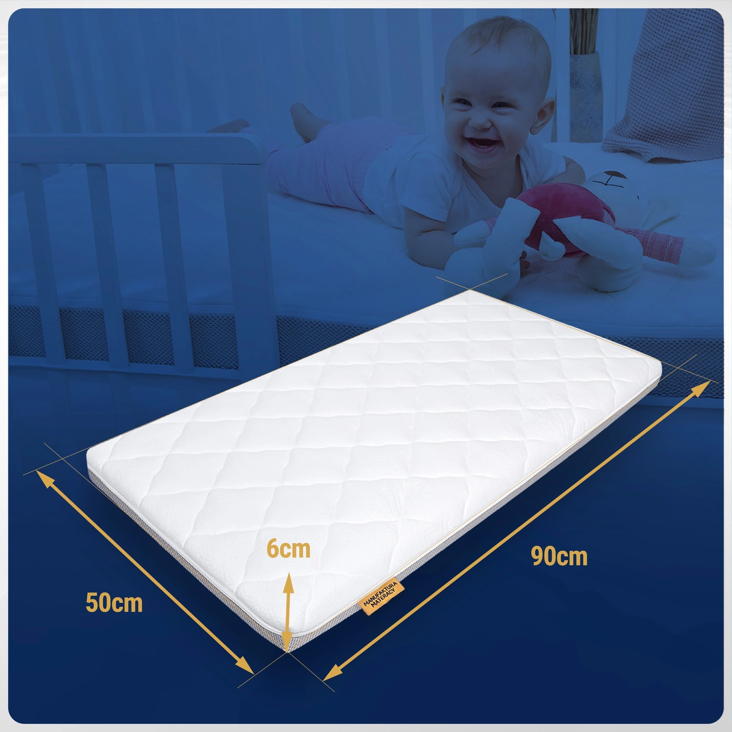 ▶️ Nasz materac o grubości 6 cm, wykonany z wytrzymałej pianki poliuretanowej T 2542 o gęstości 25 kg/m3, zapewnia idealną kombinację wsparcia i twardości. Ta specjalnie dobrana gęstość gwarantuje, że powierzchnia do spania zachowa swój kształt przez lata, nawet kiedy dziecko będzie cięższe.