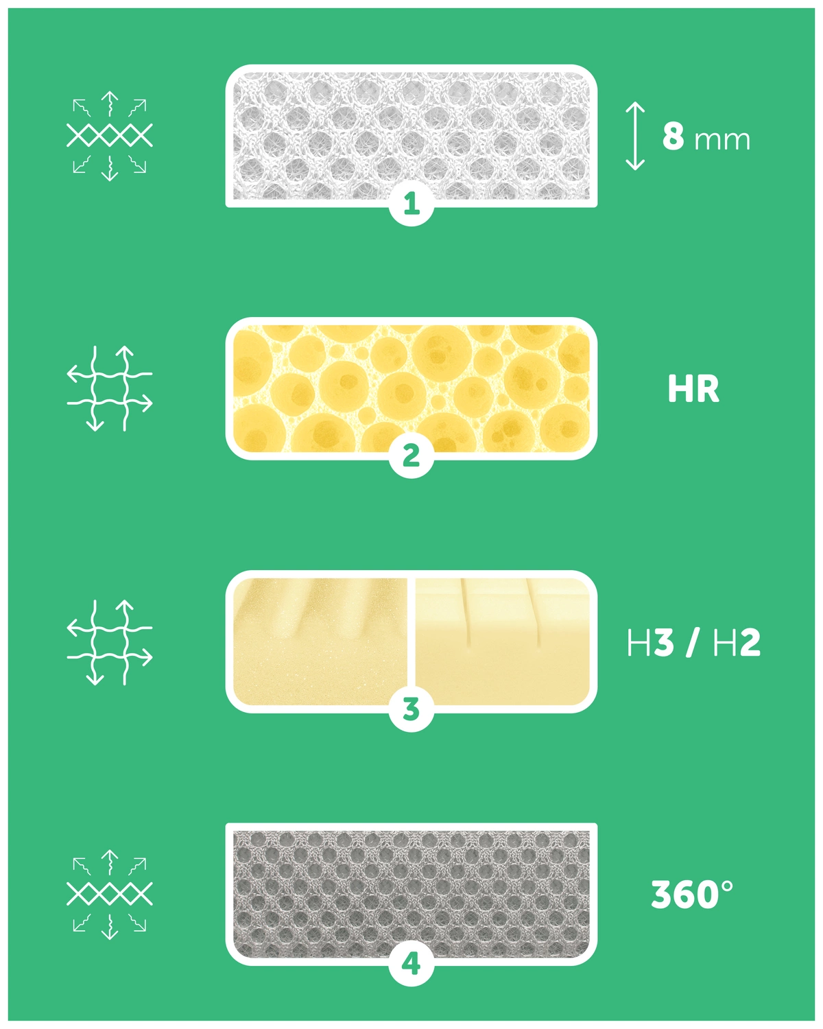 Co rodzice najmocniej cenią w tym produkcie?Przede wszystkim jego przemyślaną konstrukcję, która łączy bezpieczeństwo, wygodę i higienę – czyli to, co najważniejsze w pierwszych miesiącach życia dziecka. 1. Stworzony przez Mamę Fizjoterapeutę – Opracowany w oparciu o praktyczne doświadczenie fizjoterapeuty dziecięcego i mamy piątki dzieci – z myślą o zdrowym rozwoju maluszka od pierwszych dni życia. 2. Zaawansowany system wentylacji w materacu – Lepsza higiena snu i wyjątkowy komfort cieplny Twojego dziecka dzięki połączeniu poziomych kanałów wentylacyjnych oraz siatki oddychającej w pokrowcu. 3. Możliwość wielokrotnego prania pokrowca – Pokrowiec można prać w temperaturze do 60°C, co ułatwia utrzymanie czystości i higieny, nawet przy intensywnym użytkowaniu.