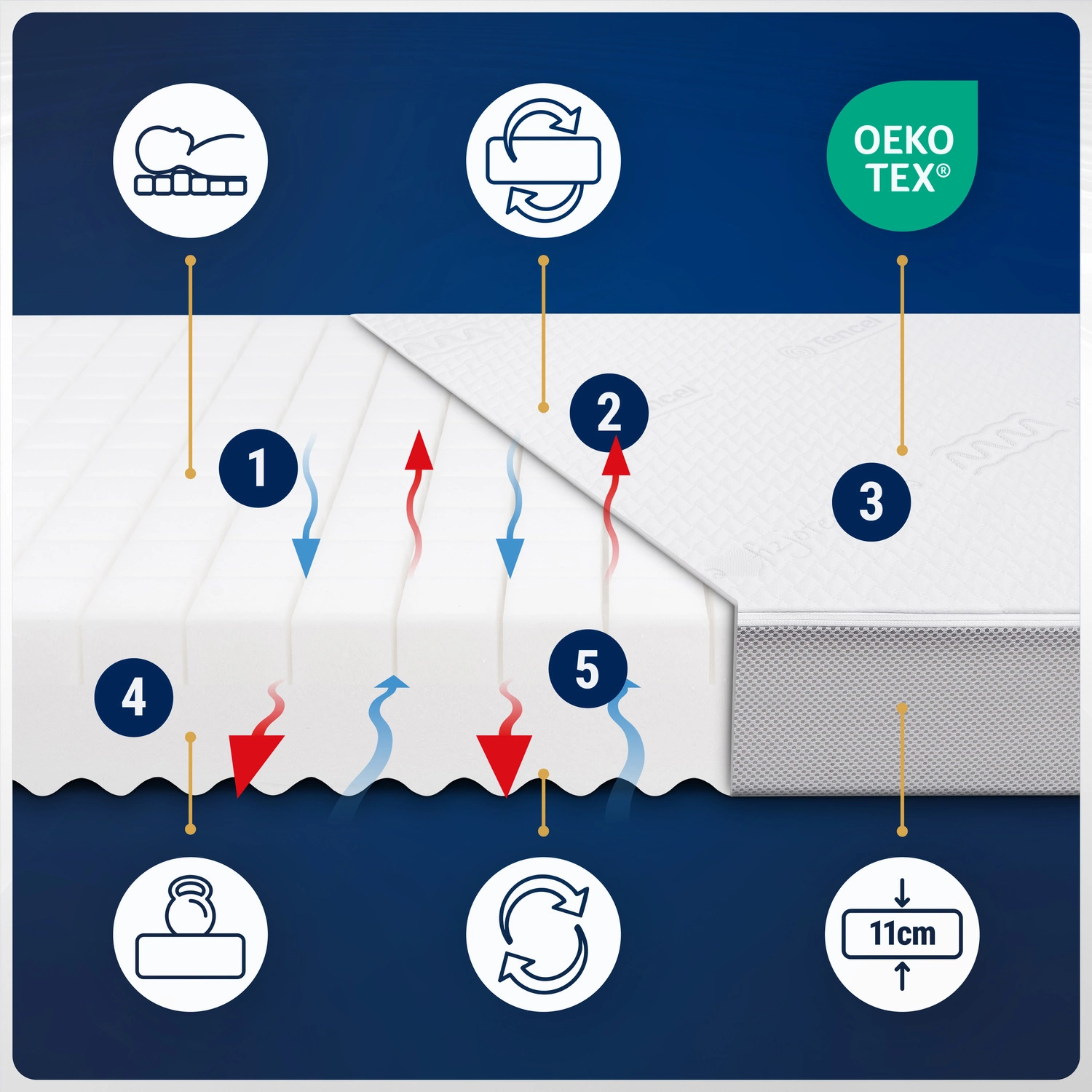 5️⃣ Oddychająca struktura: System Air Max zapewnia głębszy sen i redukuje przegrzanie.