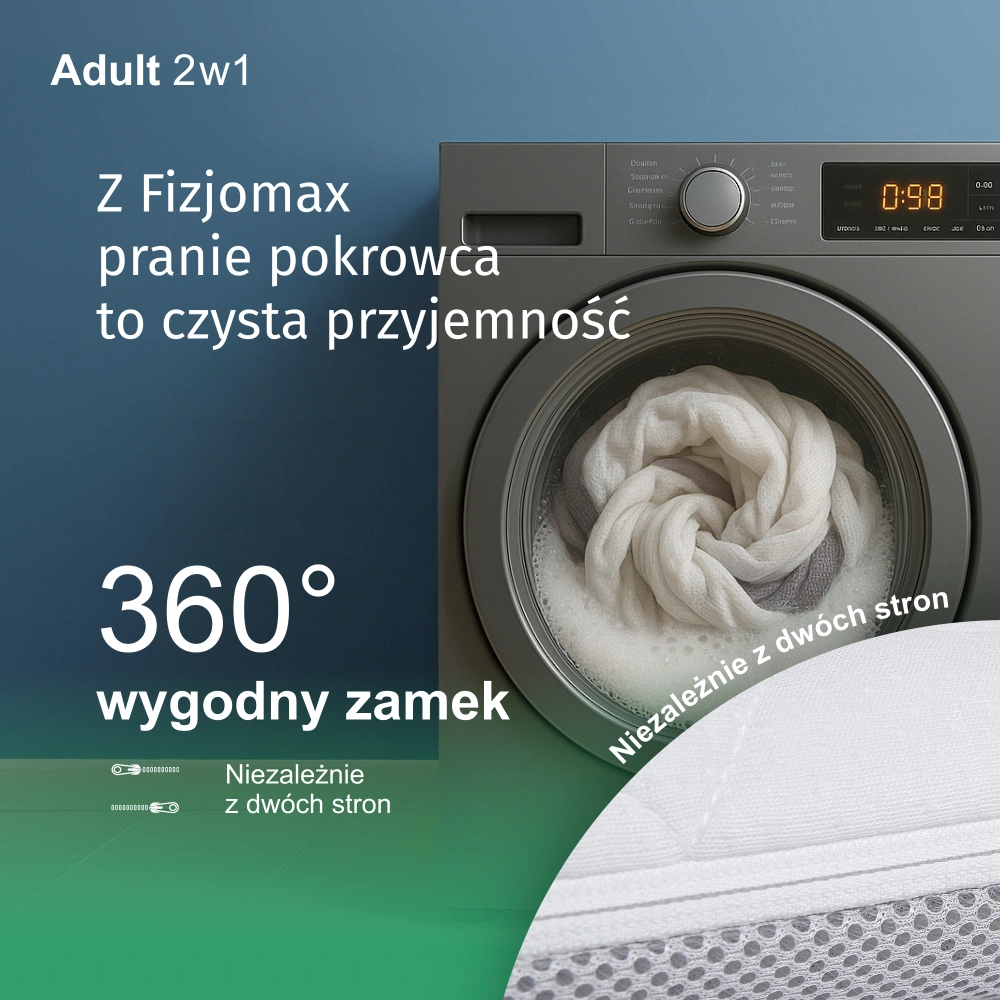 Wiemy, jak ważna jest codzienna funkcjonalność – dlatego w pokrowcu Fizjomax Adult zastosowaliśmy pełny zamek 360°, który pozwala na łatwe zdjęcie materiału z każdej strony materaca. Niezależnie od tego, czy chcesz wyprać tylko jedną część pokrowca, czy zdjąć całość – możesz to zrobić szybko, bez konieczności przekręcania materaca czy siłowania się z trudnym dostępem.