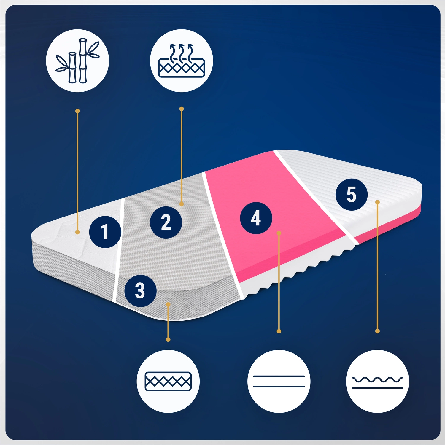 ✅ Twój maluch oddycha czystszym powietrzem, bo materac skutecznie eliminuje wilgoć, bakterie i roztocza