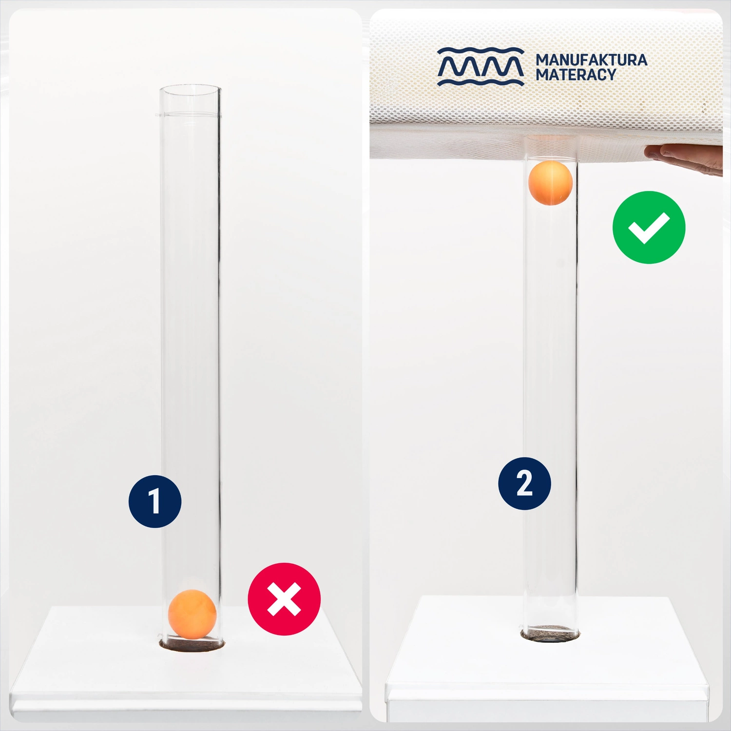 2️⃣ Nasz materac z siatką wentylującą: piłeczka nie opada = świetny przepływ powietrza