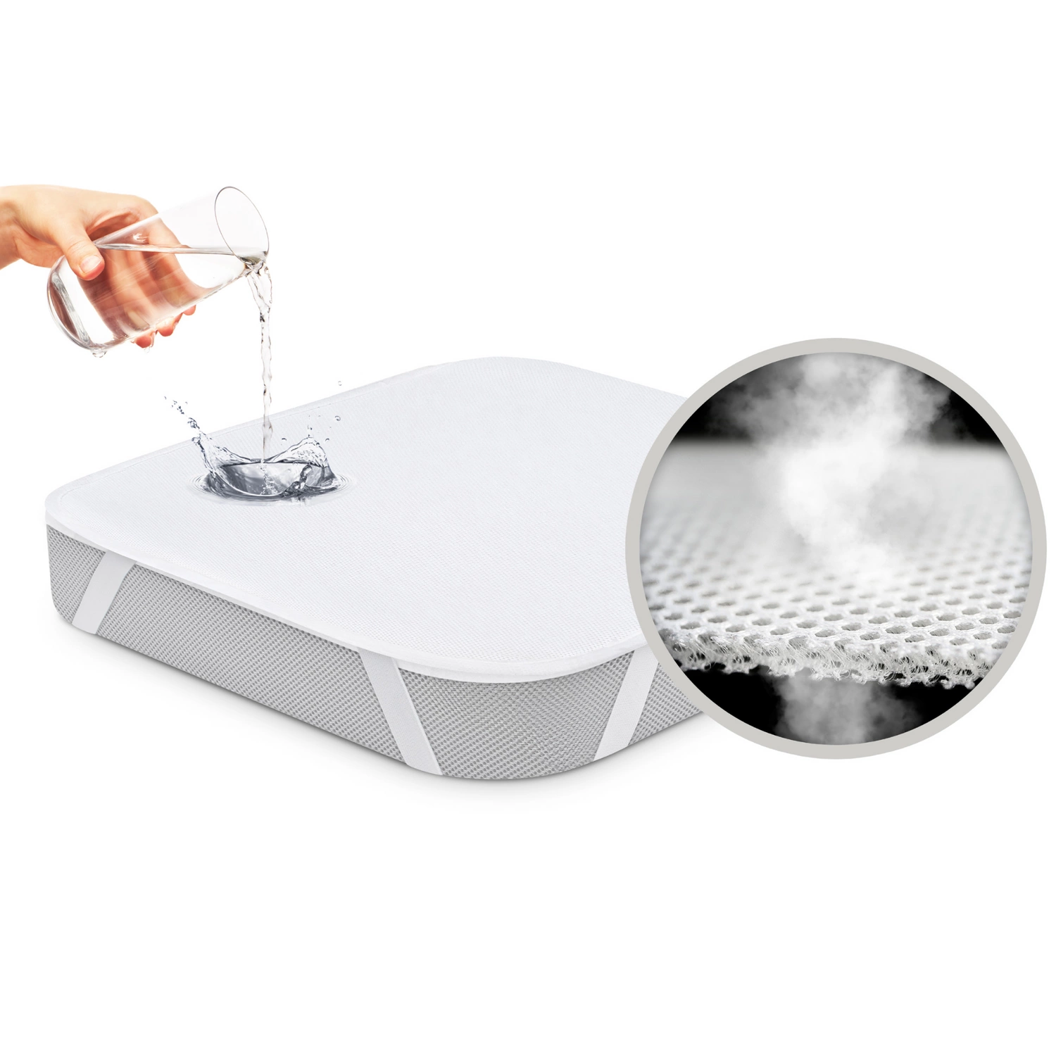 1. Oddychająca siateczka 3D Komfortowa temperatura snu, mniejsze ryzyko wybudzeń spowodowanych przegrzaniem. Lepsza higiena: mniej roztoczy, bakterii i pleśni, lepsze odprowadzanie CO₂. Efekt unoszenia się w powietrzu i izolacji dziecka od zanieczyszczeń. 2. Wodoodporny laminat 100% skuteczna ochrona materaca przed przemoczeniem i zabrudzeniem. Łatwe i szybkie zakładanie oraz zdejmowanie dzięki elastycznym materiałom. 3. Szczególnie rekomendowany W okresie odpieluchowywania – zapewnia maksymalną ochronę i higienę bez kompromisów. 4. Szerokie i mocne gumki Stabilne mocowanie, łatwość zakładania i ściągania, bez zsuwania się z materaca.