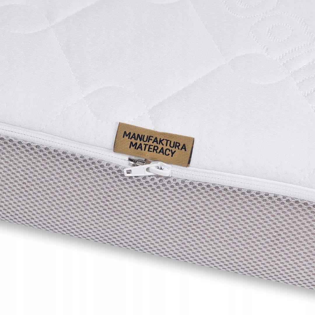 Nie rekomendujemy takiego rozwiązania – brak wentylacji od spodu może prowadzić do gromadzenia się wilgoci, a w konsekwencji do rozwoju pleśni i pogorszenia higieny snu. Jeśli jednak z jakiegoś powodu musisz położyć materac na podłodze, pamiętaj o kilku zasadach: – Regularnie podnoś materac, aby umożliwić jego przewietrzenie. – Obserwuj, czy nie pojawia się wilgoć pod spodem lub w pokrowcu. – Częściej pierz pokrowiec, aby zachować świeżość i czystość. – Materac połóż stroną z siateczką wentylacyjną do podłogi – poprawi to cyrkulację powietrza. – Dla dodatkowej ochrony oddychalności warto rozważyć zakup ochraniacza z siateczką 3D. Takie użytkowanie wymaga większej troski, ale przy zachowaniu ostrożności może być możliwe bez ryzyka dla dziecka.