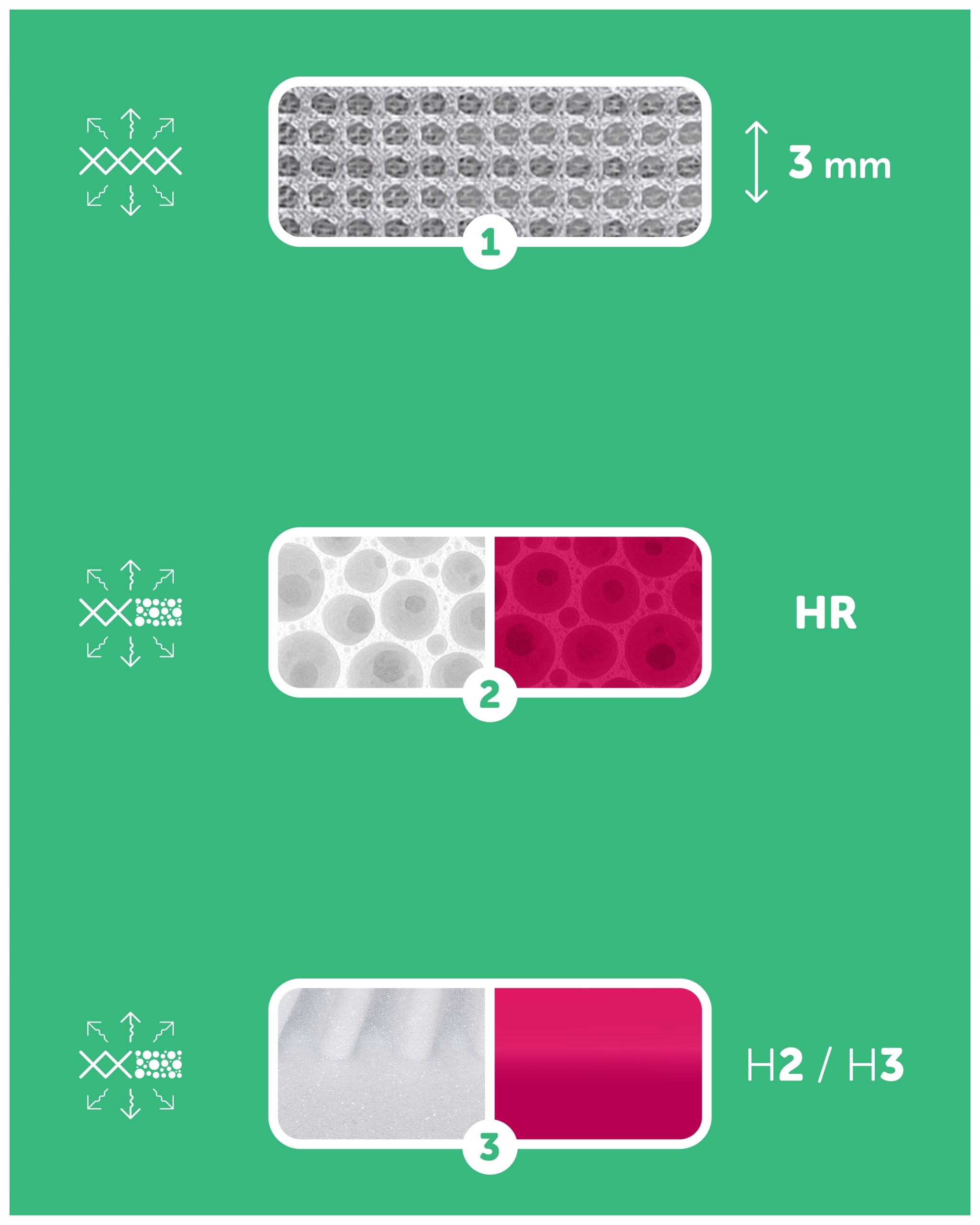 • Strona z pianki HR 50 kg/m³ – sprężysta i przewiewna