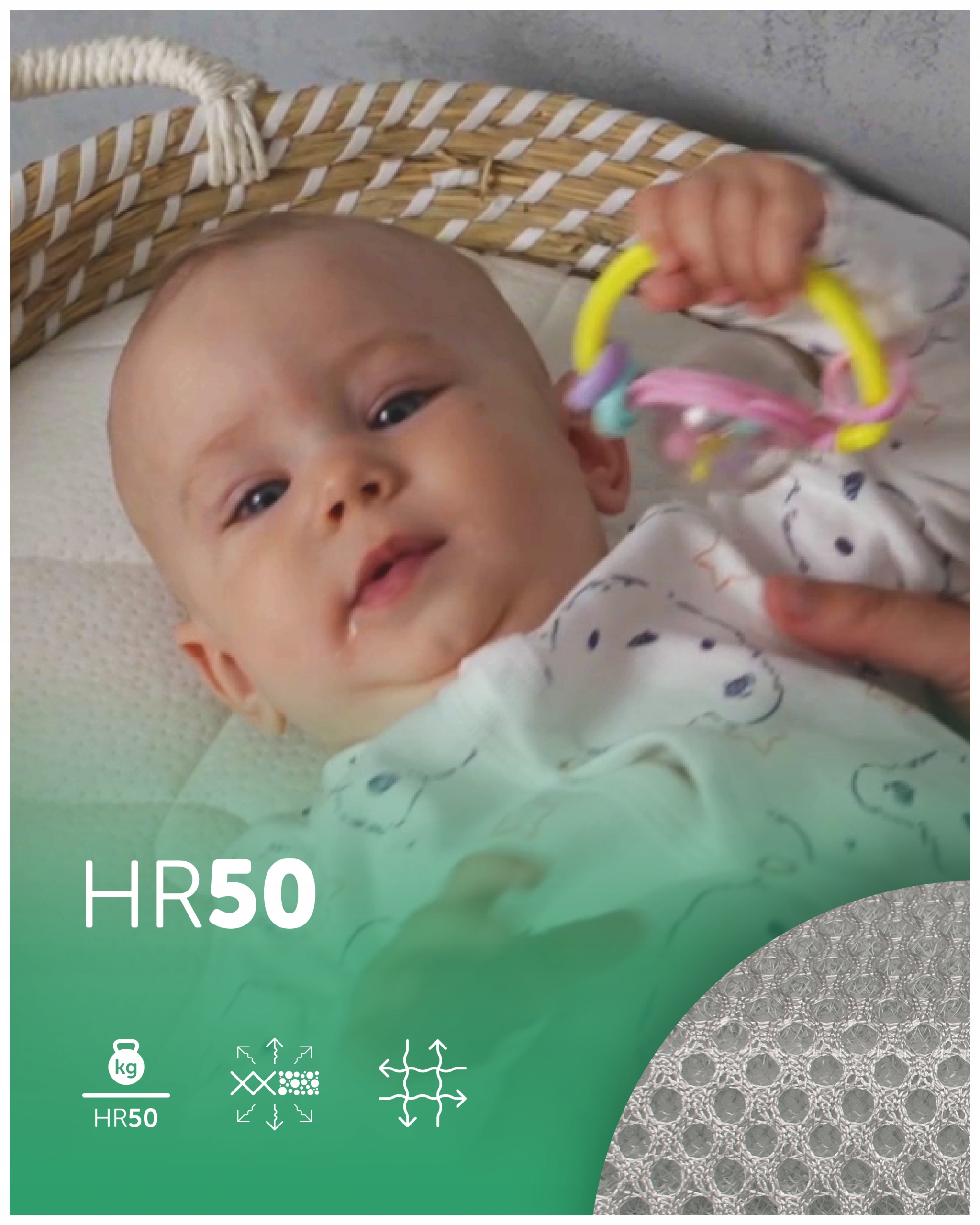 Zastosowana siatka 3D dodatkowo zwiększa cyrkulację, pomagając utrzymać świeży i higieniczny mikroklimat, zgodny z zaleceniami AAP² i WHO³ dotyczącymi bezpiecznego snu niemowląt.